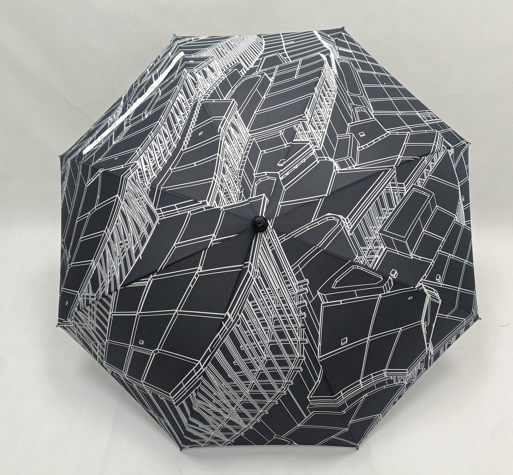Gatz Haraneko bilduma-paragua. Automatikoa, 8 hagaxkarekin eta 110 cm-ko diametroko XXL tamainarekin. Diseinu beltz esklusiboa, Gatz Haraneko egituretan inspiratua.