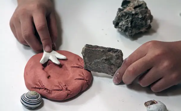 Découvrez la paléontologie et apprenez à lire les traces des animaux du passé tout en fabriquant votre propre empreinte fossile.
